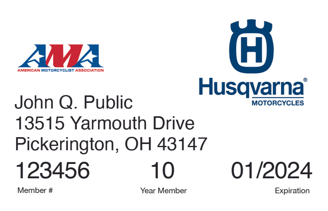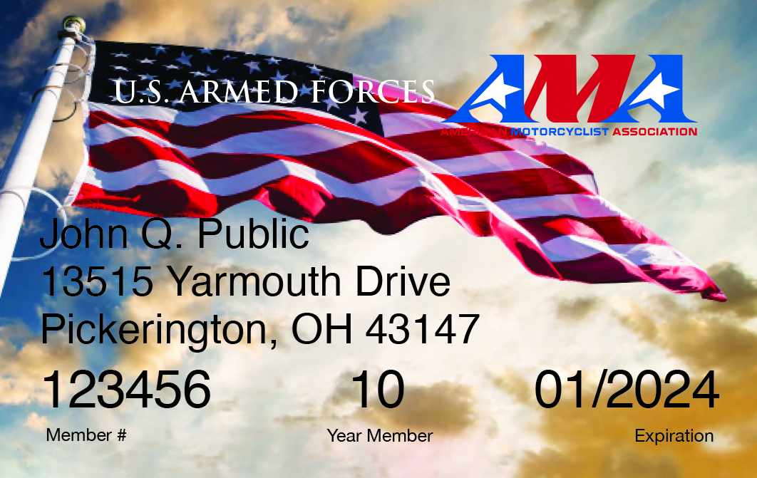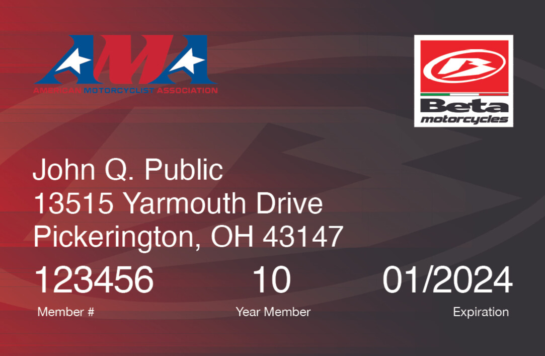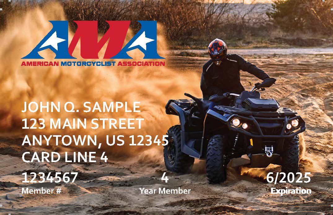 Membership Cards We share your passion for motorcycling.We understand brand loyalty and the importance of personal expression. That’s why the AMA offers these themed membership cards at no additional cost.You can choose your affinity card when you renew online, or call AMA Member Services at (800) 262-5646 and tell us which card you would like. Affinity AMA 100 years Life Member Life Member Plus Affinity AMA KTM Triumph Indian Motorcycles Affinity Competition Honda Backcountry Discovery Routes Yamaha Husqvarna Motorcycles Beta Motorcycles Harley-Davidson Affinity Youth AFfinity Women Zero Motorcycles Affinity Scooter Arai BMW MOTORRAD U.S. Armed Forces GasGas Suzuki ATV Rider